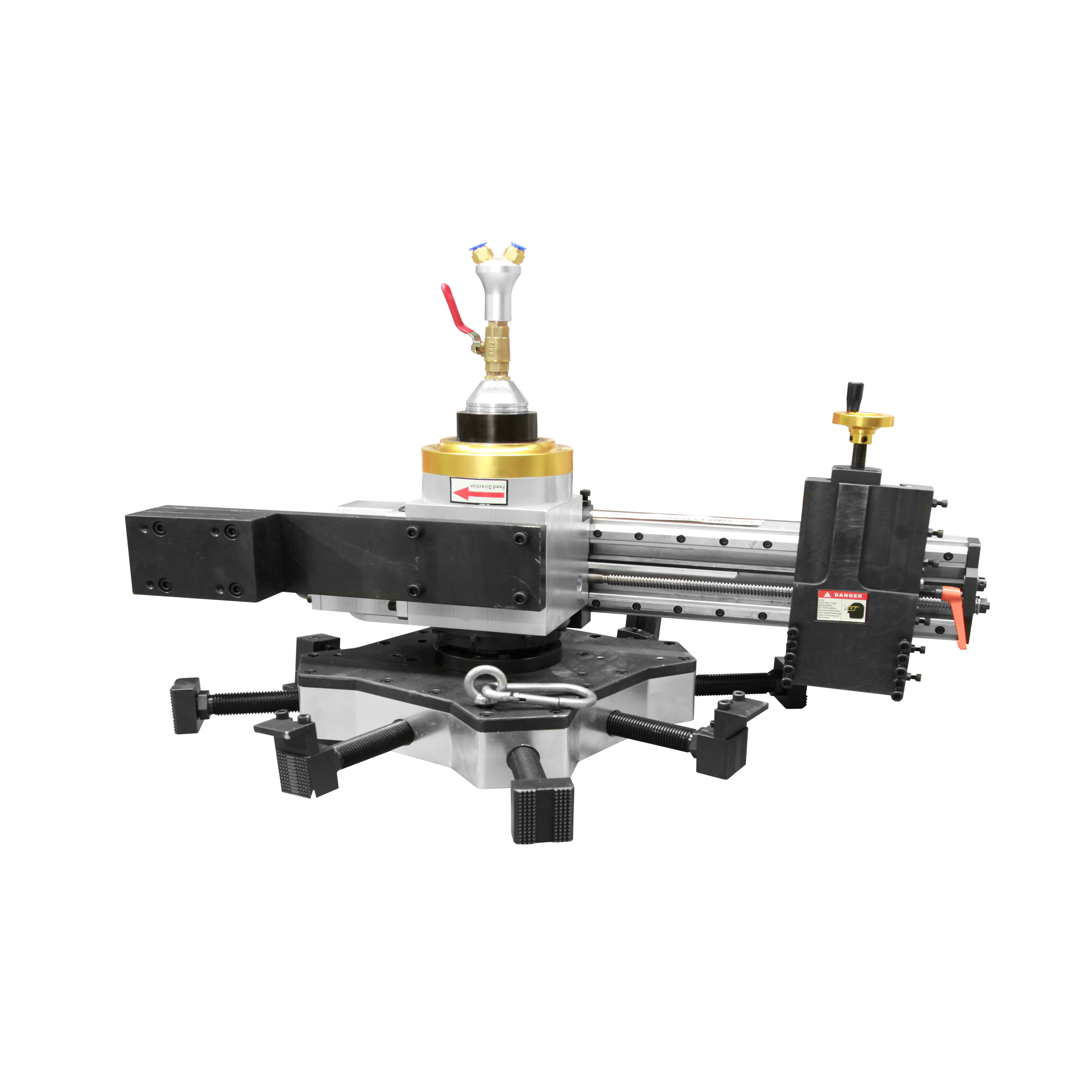 WF1000 flange end face processing machine is a portable and efficient product. The machine adopts internal clamping method and is fixed in the middle of the pipe or flange. It can process various forms of inner hole, outer circle, flange sealing surface (RF,RTJ, etc.). The whole machine adopts modular design, easy to install and disassemble, equipped with pre-tightening brake system, capable of intermittent cutting, unlimited working direction, high productivity,